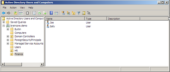 Figure 3: Joe and Sally are located in the Finance OU.
