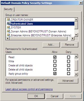 When you add a user, computer, or group to this you are in essence adding that object to the ACL for the GPO and granting the object Read and Apply Group Policy permissions, which can be seen in Figure 3.