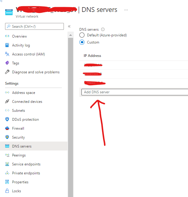 Make sure in Azure you have set STATIC IP on the VM . And that you have configured the dns’s in the Vmnetwork as follows: