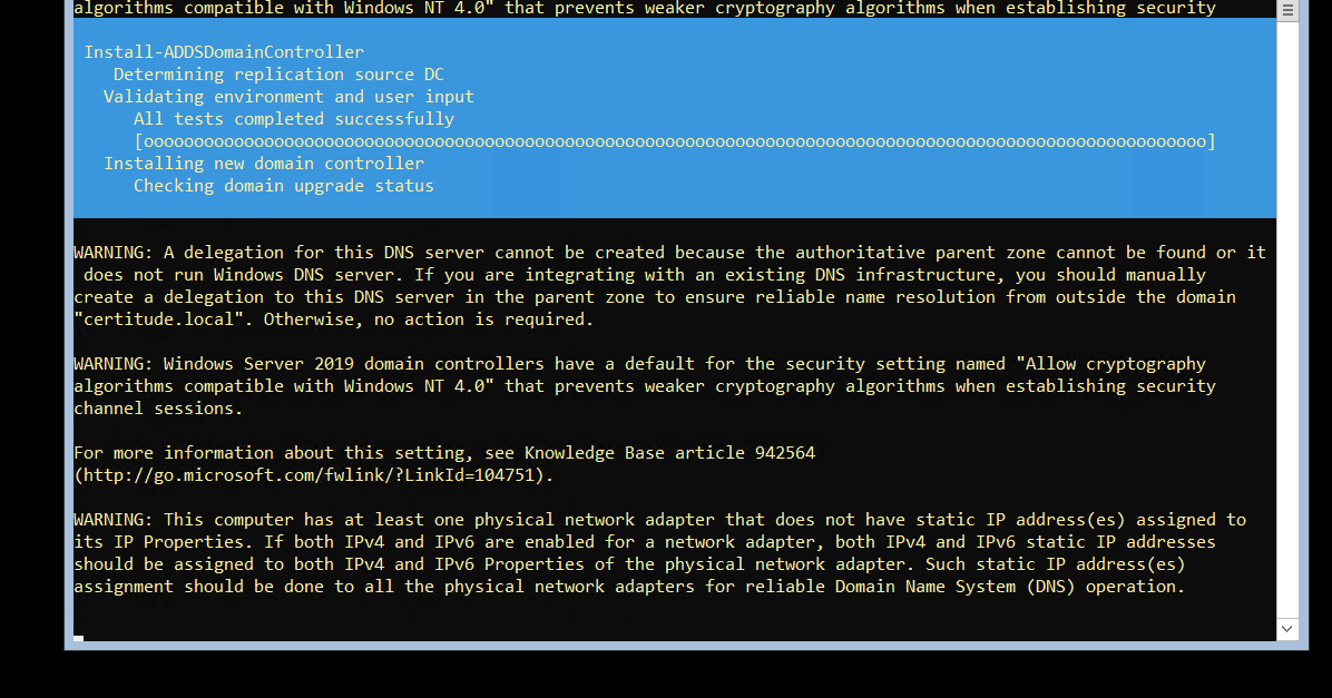 As per azure specs if you have configured the DNS in the Network you don’t need to change anything in the network cards so we will raise the DC with the following command: