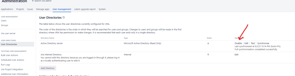 Step 3 ( Only required if you using AD SYNC ) . Migrating AD users directory to Jira Service desk directory & Disabling SYNC