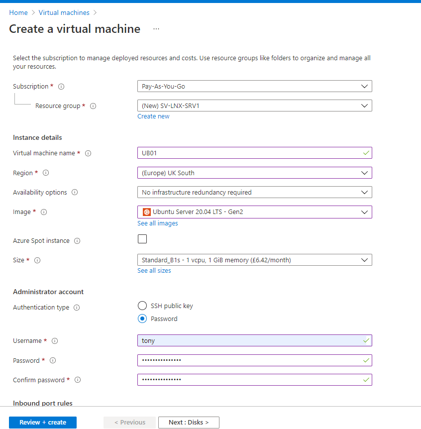 We have in this part also created a Resource group called SV-LNX-SRV1