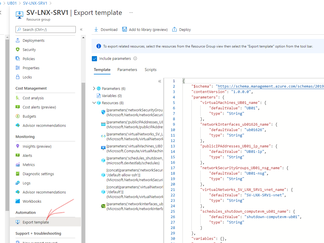 Now . we are going to Export the template of the whole Resource group . That includes a small change on the NSG where we have disabled SSH inbound