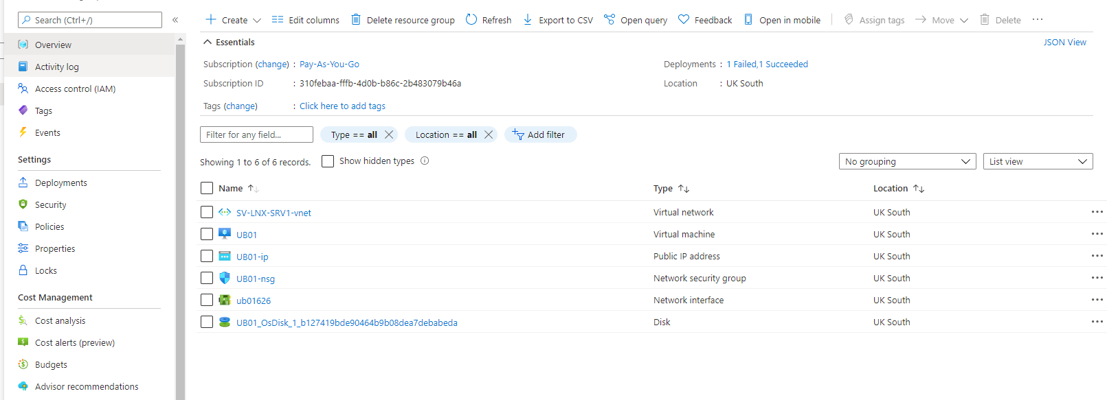 We have in this part also created a Resource group called SV-LNX-SRV1