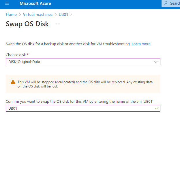 STOP THE VM , and we will replace with the original disk that we got from the snapshot ( we also want the data back , remember?)