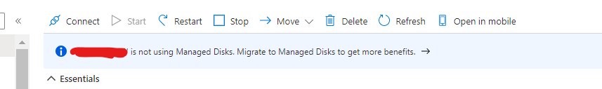 You will notice in your VM that now you have an option to migrate to managed disk