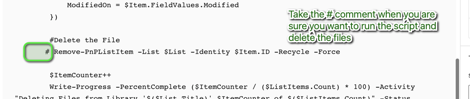 - Once you have Reviewed the files to delete , you can uncomment the “deletion line”