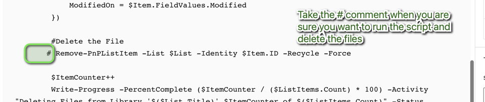 - Once you have Reviewed the files to delete , you can uncomment the “deletion line”
