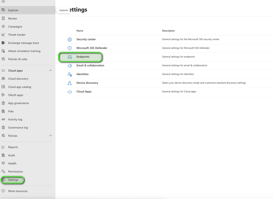 - Click on settings, then go to Endpoints