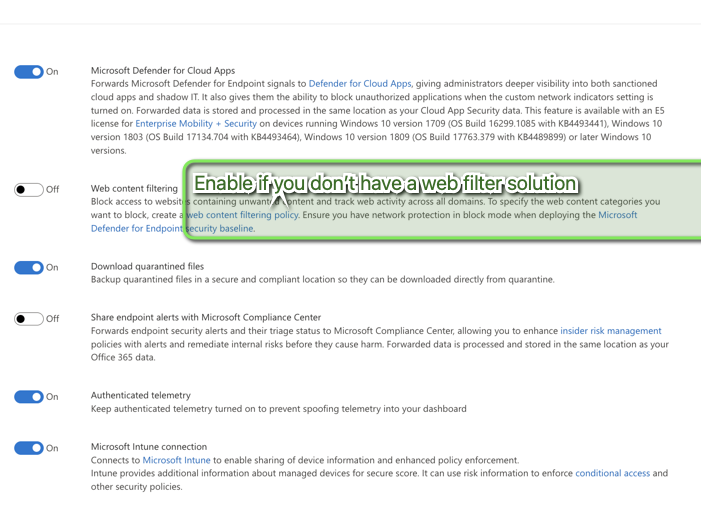 Web content Filtering :Enable if you don’t have web filtering , read the guidelines