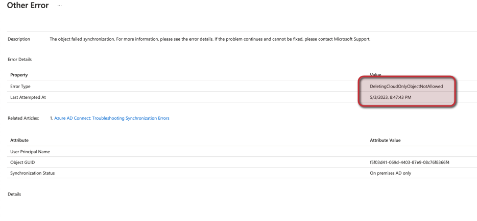 - The error is caused as a result of converting accounts from AD to Cloud using the restore technique once moved from the OU where you are syncing your users