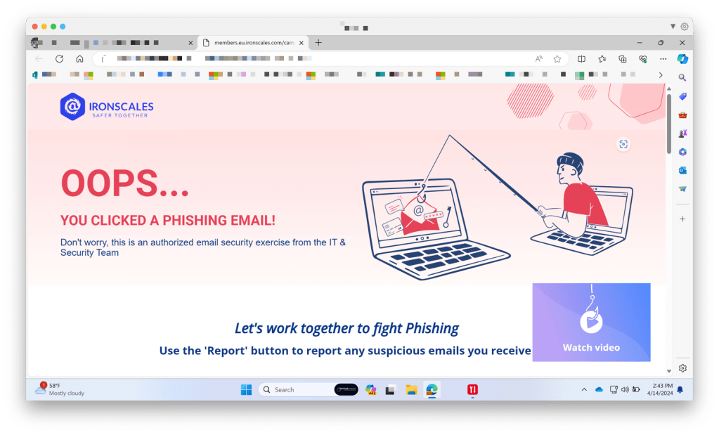 - When colleagues click on the phishing link they are sent to specific training that iron scales can provide or you can modify with templates